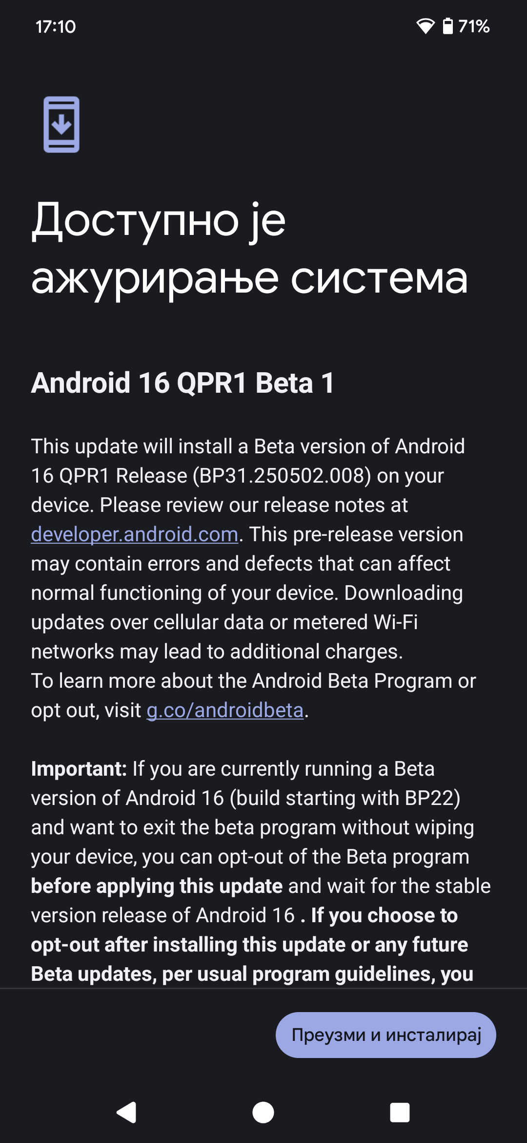 Nego gledam Samsung je dobio i ja bacio oko na net i vidim pise da ima ali moj tel ne dobija nista. Valjda ce da dobije u jednom trenutku.