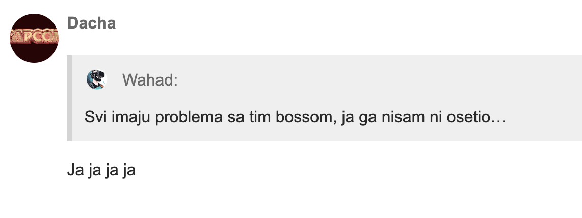 Taman dolazimo do Gameplay dela. Ovde nemam preterano puno zamerki glavna je ta kao sto rekoh gore light Dodge/Parry opcije. Mislim da bi veoma doprineo tempu igranja, mogao bi da se zanemari taj problem minimalnog broja resursa jer bi Melee mogao da udje kao neka opcija. Ponovo kazem kad dodjete do poslednjeg boss-a videcete da vam ova opcija treba, a nemate je.