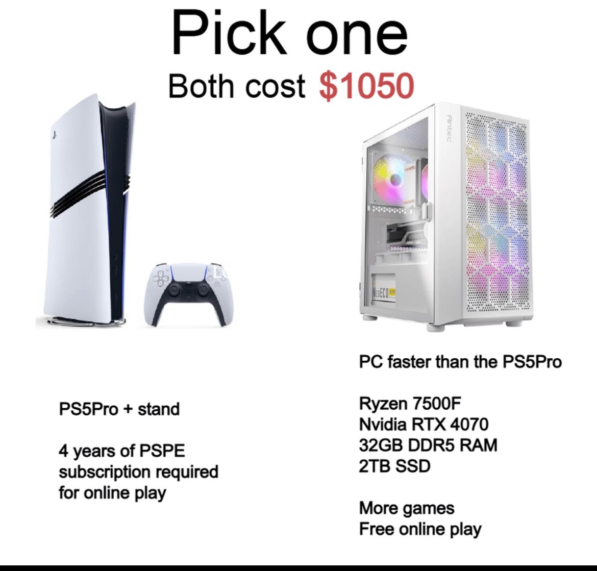 S obzirom da je PS sada velicine mini atx kucista, biram pc. Danas lako moze da se nadje fensi malo kuciste da stoji pored tva. Bice zeleno. I kockasto. Da me podseca na lepsa vremena. ![]()