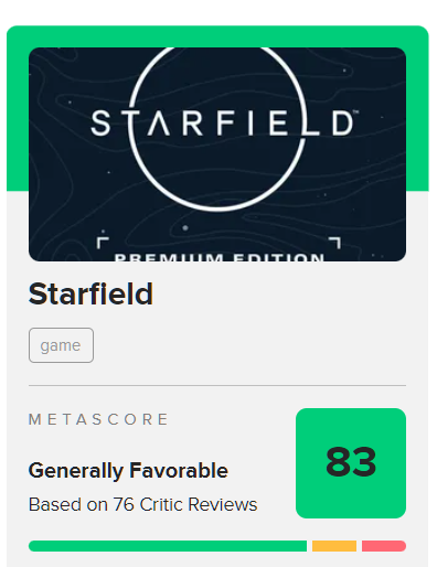 Bethesda nije u takvoj opasnosti ali bilo bi kul da je malo viša ocjena. Mada vjerujem da je njima nebitno jer imaju mindshare trenutni, svi pričaju o Starfieldu pa čak i ti koji je pljuju. Mislim da Xbox nije imao odavno takvu igru oko koje je toliki hajp i da su prezadovoljni.
