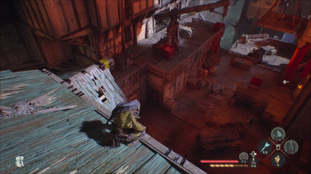 Cela filozofija oko gameplaya i načinu prelaska ove igre je poprilično direktna. Pratite šablone neprijatelja, trudite se da ostanite u senci, zaobiđete ih ili nadmudrite kako bi došli do svog cilja. I sada, dolazim do jednog jako overwhelming trenutaka, makar za mene na početku igranja. Za razliku od dosadašnjih Styx naslova koji su bili mission based, znači svaka misija ima svoju mapu. Styx: Blades of Greed se dešava u poluotvorenom svetu. Vi faktički imate tri ogromne mape, i na svakoj od njih ćete završavati određeni set misija. Kada kažem ogromne, mislim stvarno velike, komplikovane, sa neverovatnim nivoom detalja i sjajnim level designom. To znači da recimo ako vas neko vidi, morate stvarno da budete snalažljivi i nađete mesto gde nikoga nema, jer taj „otvoreni svet“ na jednoj mapi je prepun vojnika, neprijatelja, ljudi koji vas se plaše i koji će otrčati kako bi vas „otkucali“ i tako dalje.