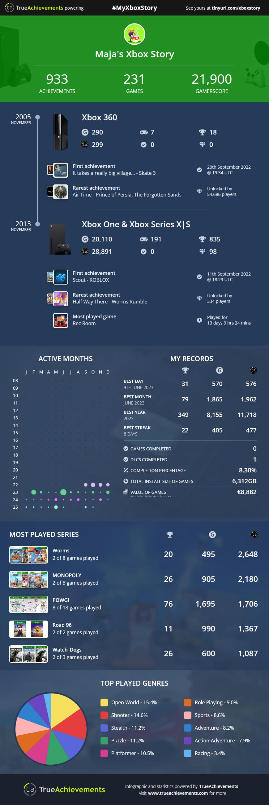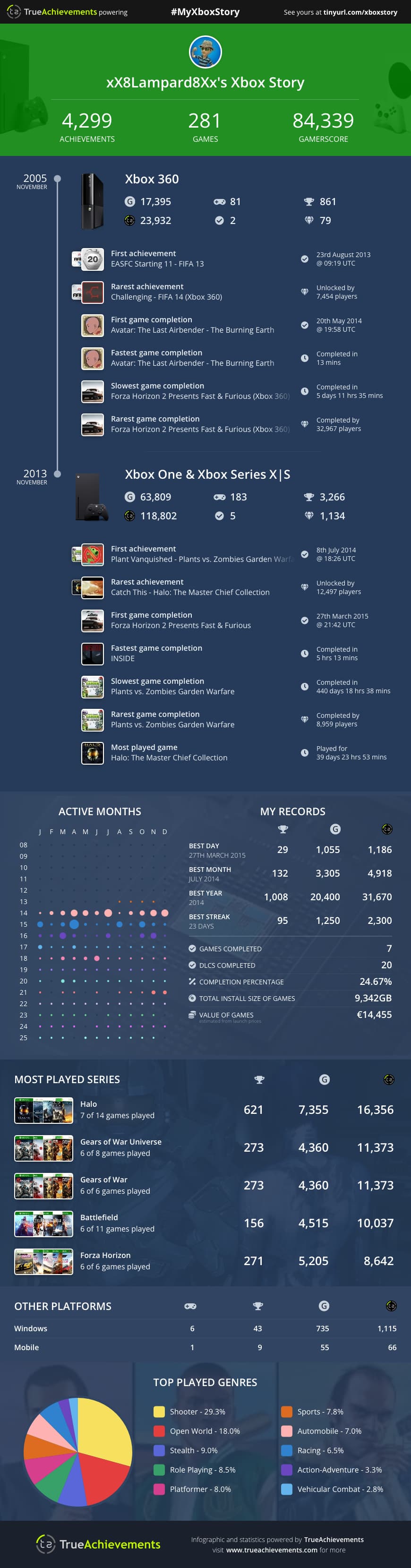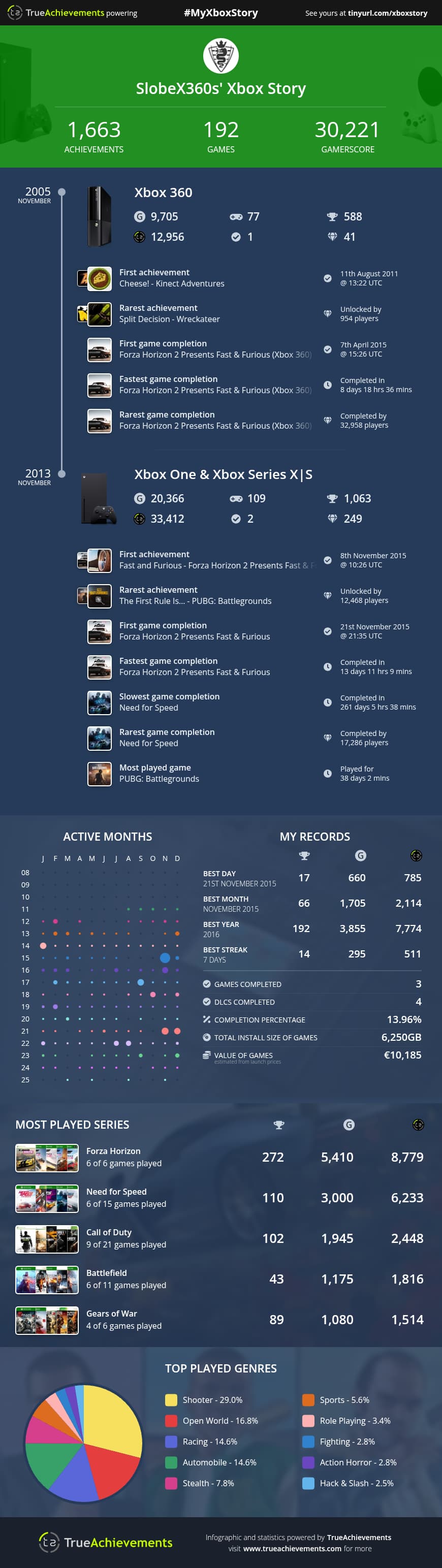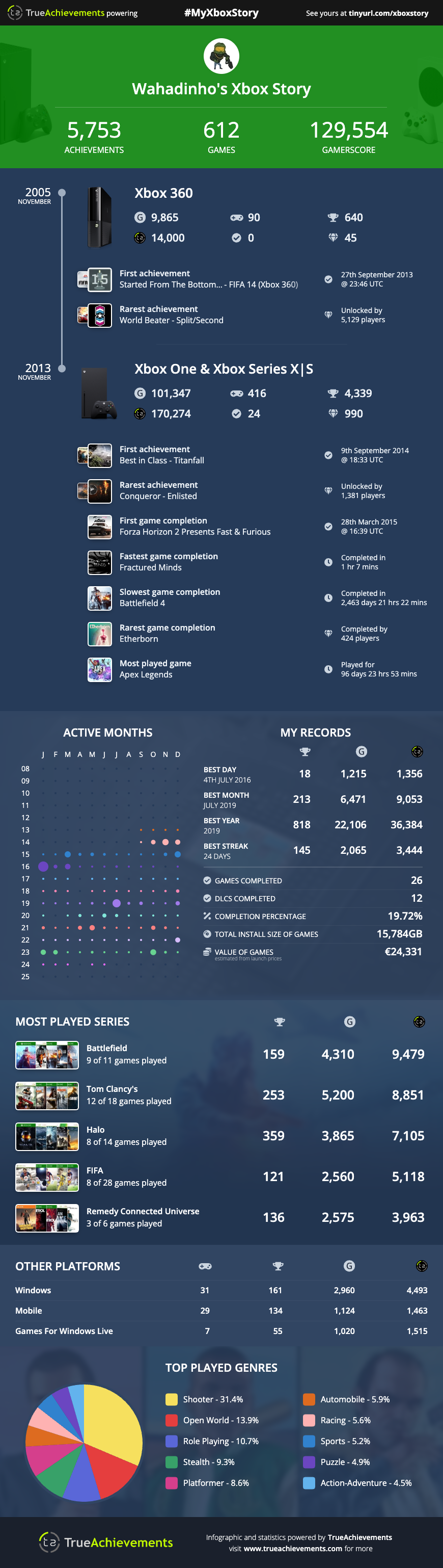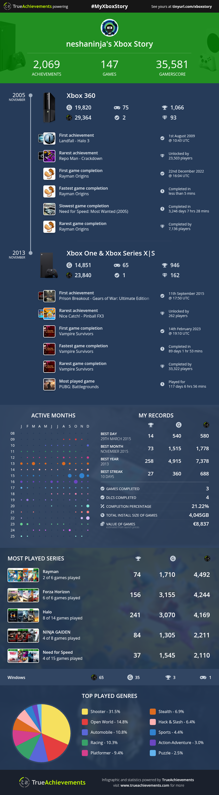 U čast 20. godišnjice Xbox360 što znači i 20. godišnjice Xbox achivements-a True Achievements napravio ove infografike da se mogu napraviti cijele tvoje lične Xbox istorije.